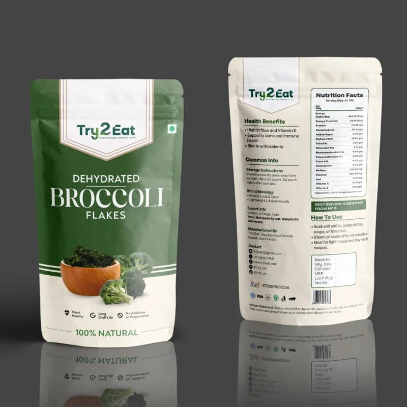 TRY2EAT Broccoli Flakes | 100% Natural | Vegan | No Additives | 50g