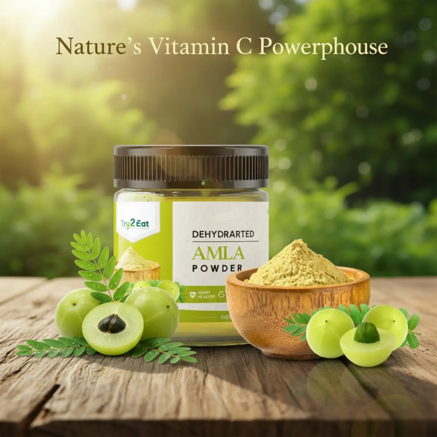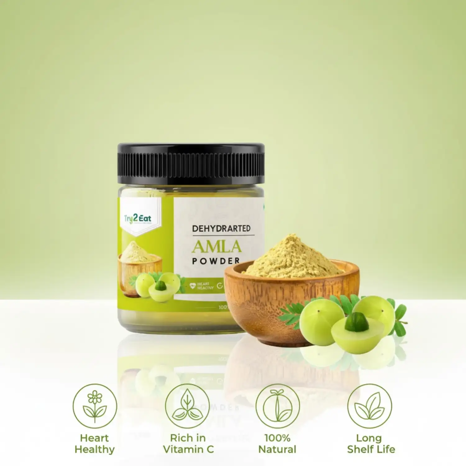 TRY2EAT Amla is produced from premium-quality raw material, dehydrated and finely ground under hygienic conditions. This powder is 100% natural, vegan, and preservative-free, ensuring authentic flavor and nutrition.