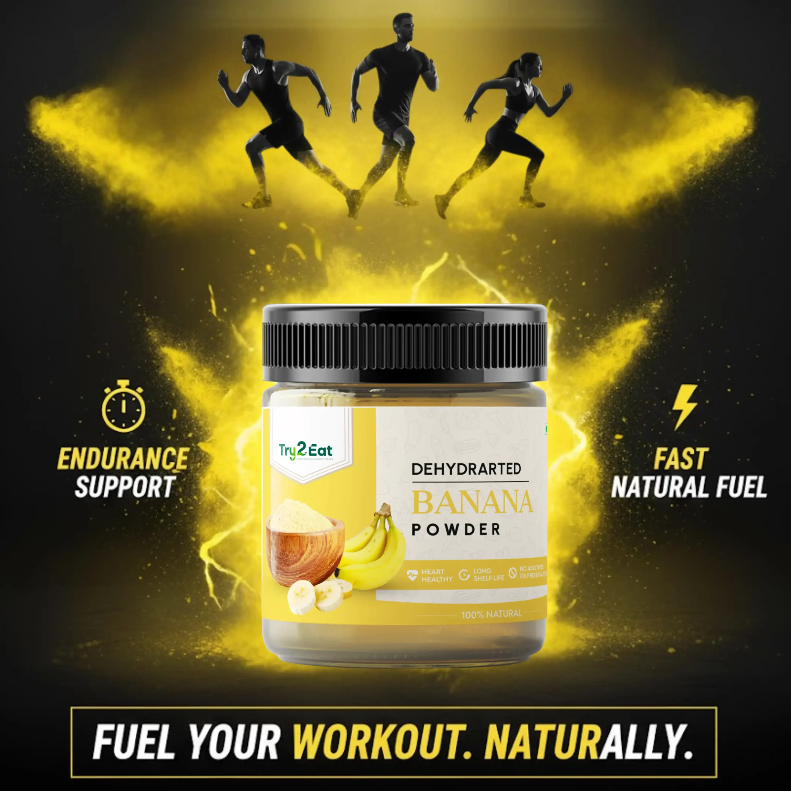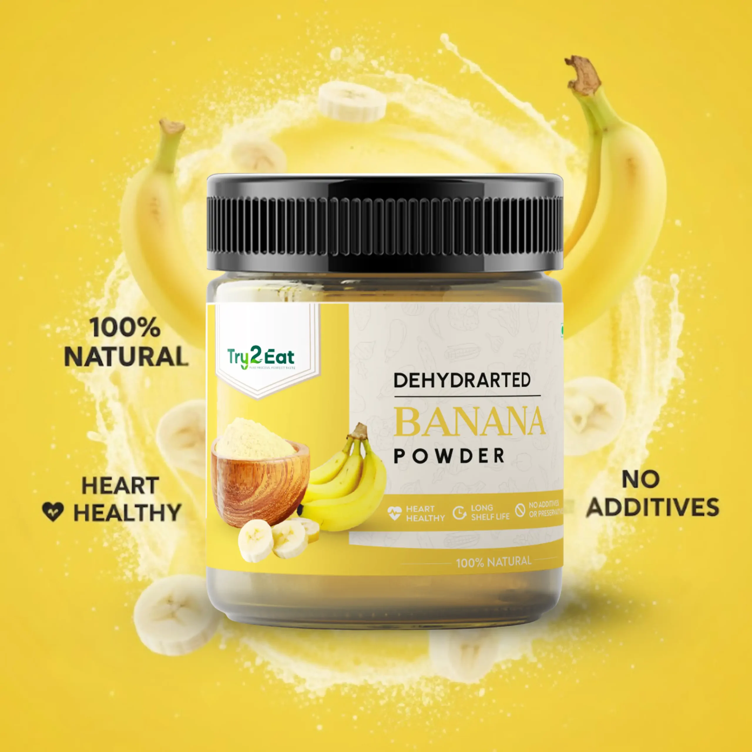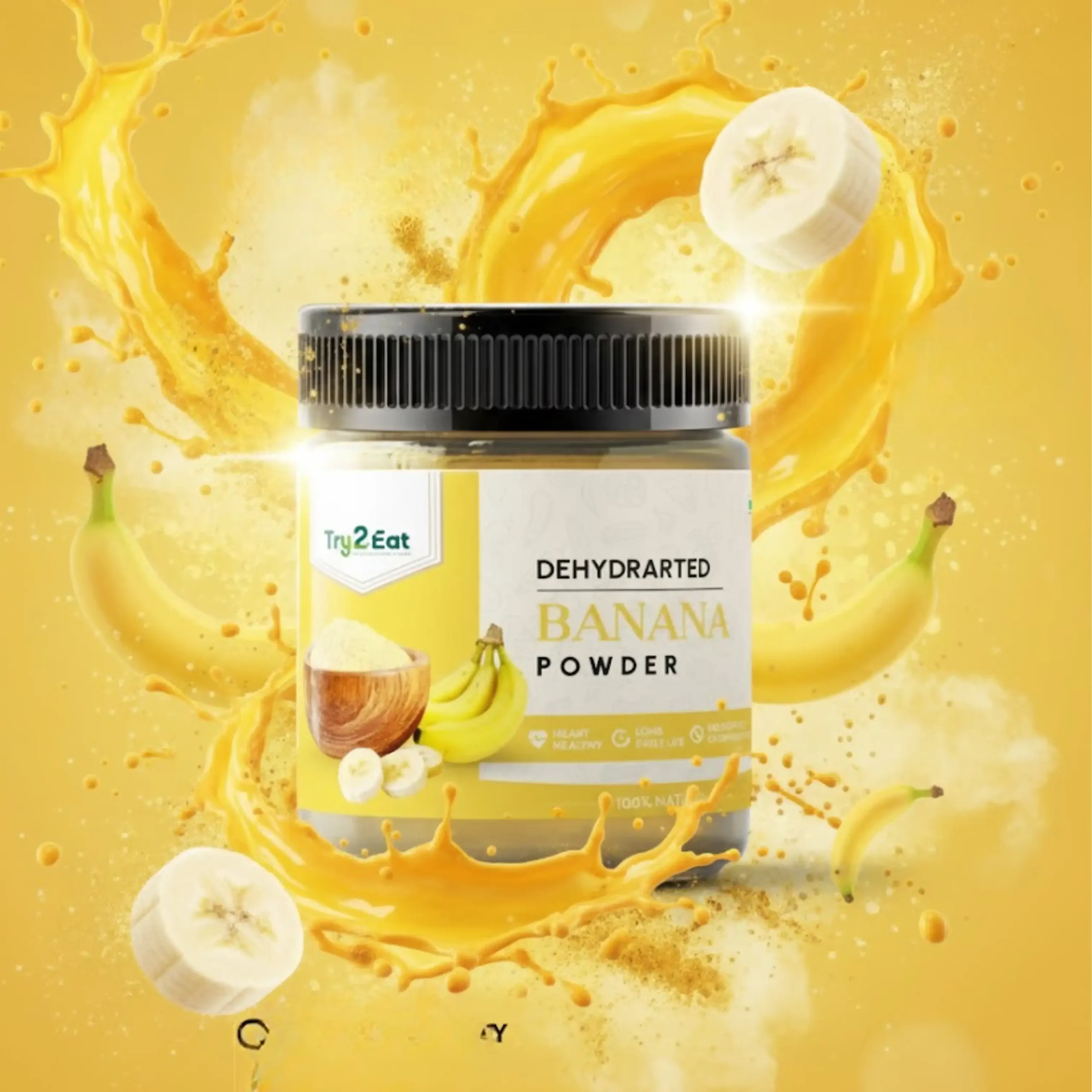 TRY2EAT Banana is produced from premium-quality raw material, dehydrated and finely ground under hygienic conditions. This powder is 100% natural, vegan, and preservative-free, ensuring authentic flavor and nutrition.
