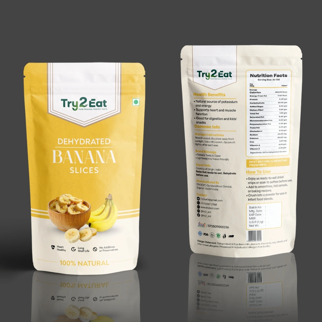 TRY2EAT Dehydrated Banana Slice is carefully processed to retain its natural flavor, color, and nutrients. This product is 100% vegan, preservative-free, and suitable for export markets.
