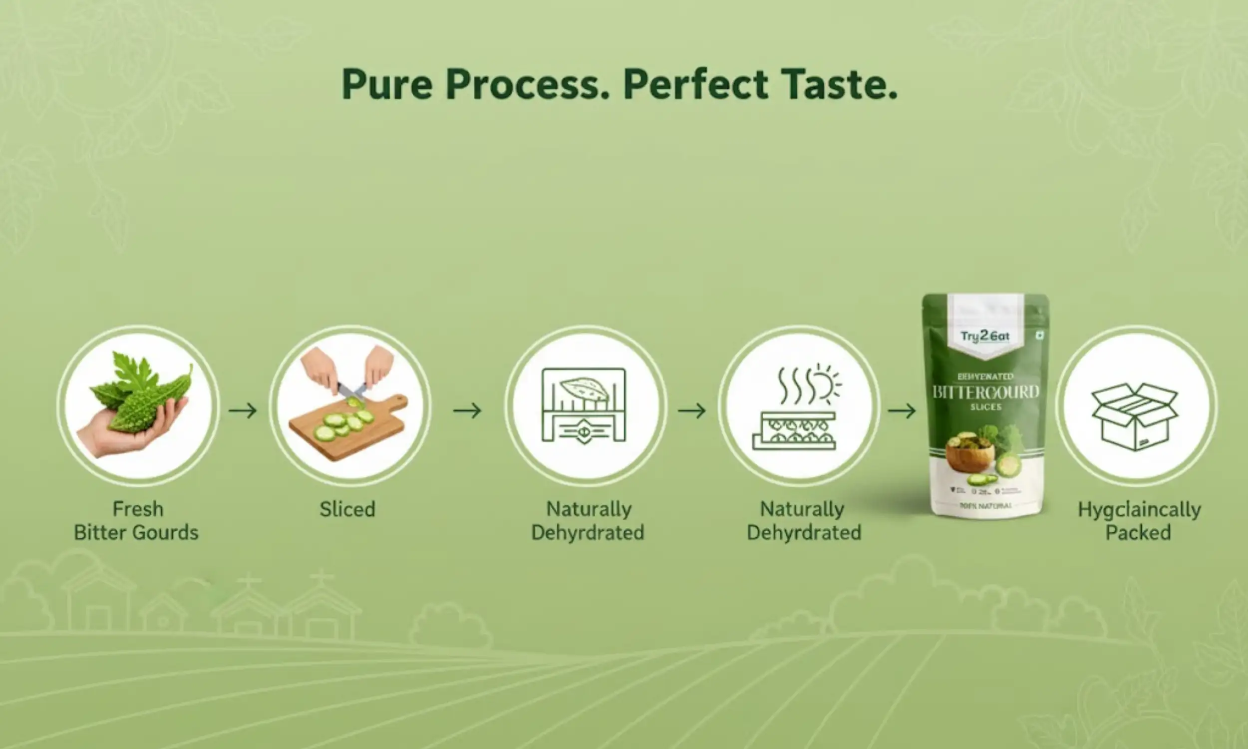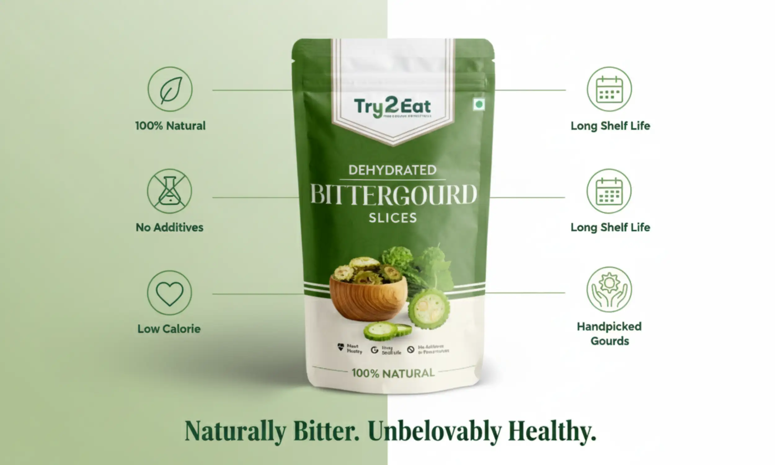TRY2EAT Dehydrated Bittergourd Slice is carefully processed to retain its natural flavor, color, and nutrients. This product is 100% vegan, preservative-free, and suitable for export markets.