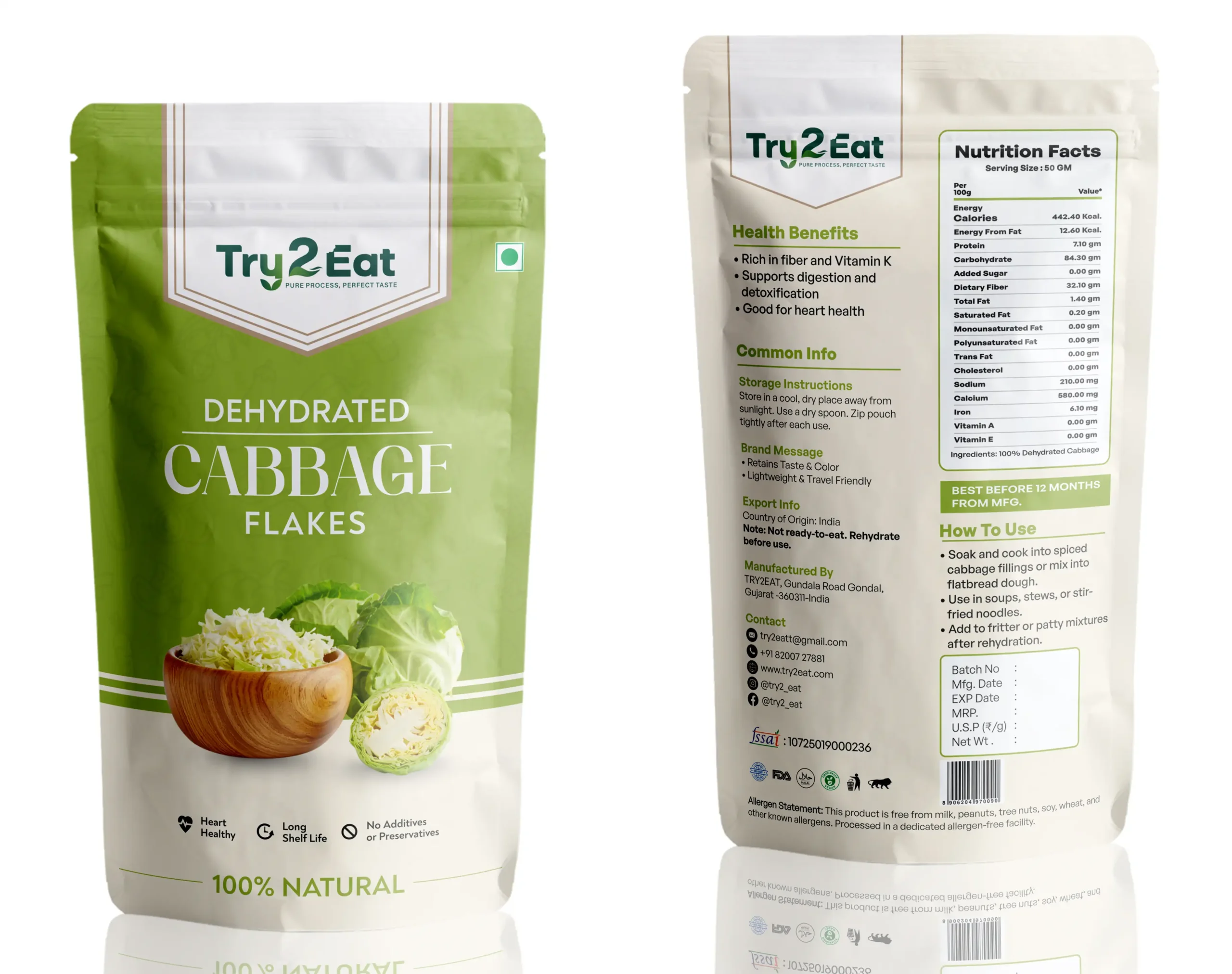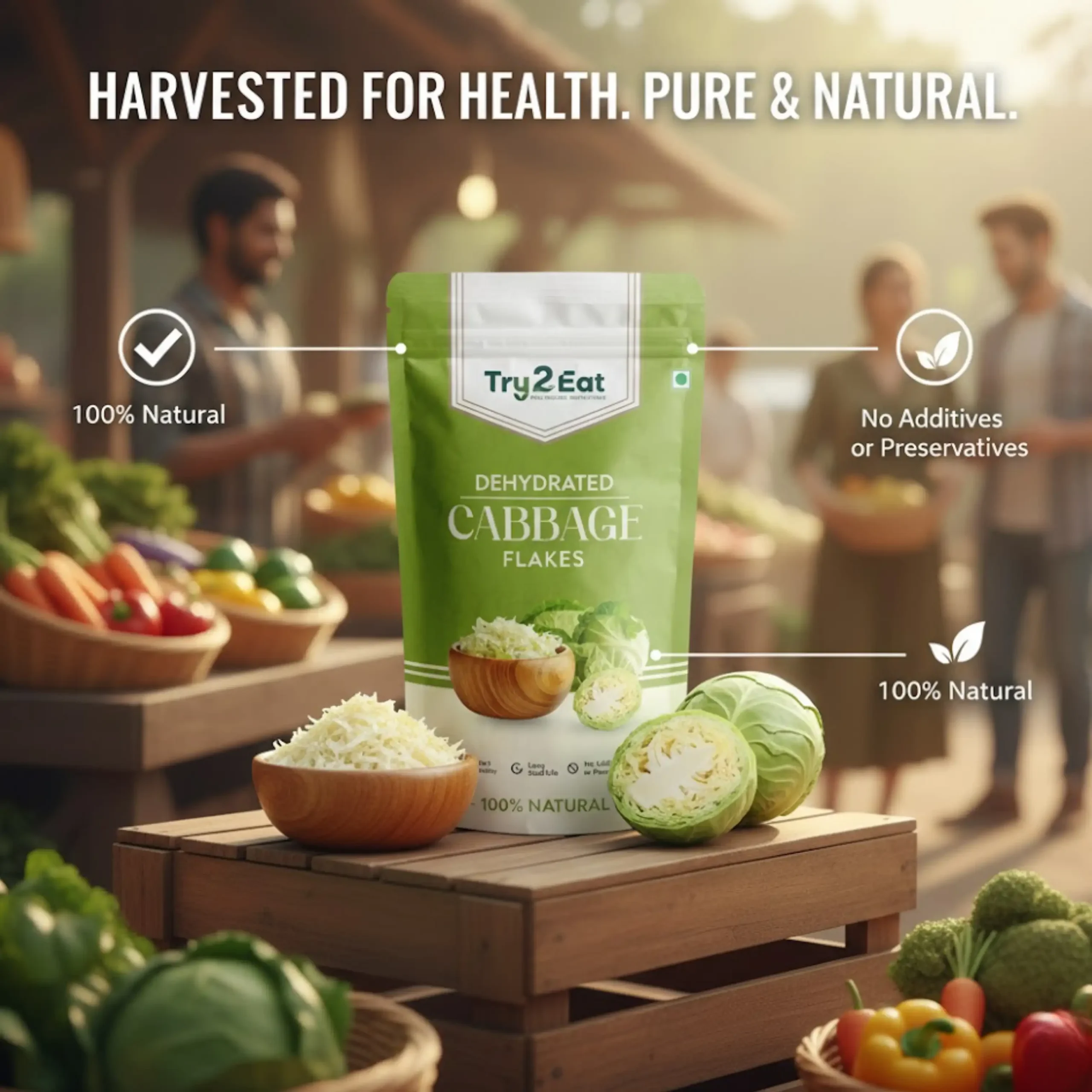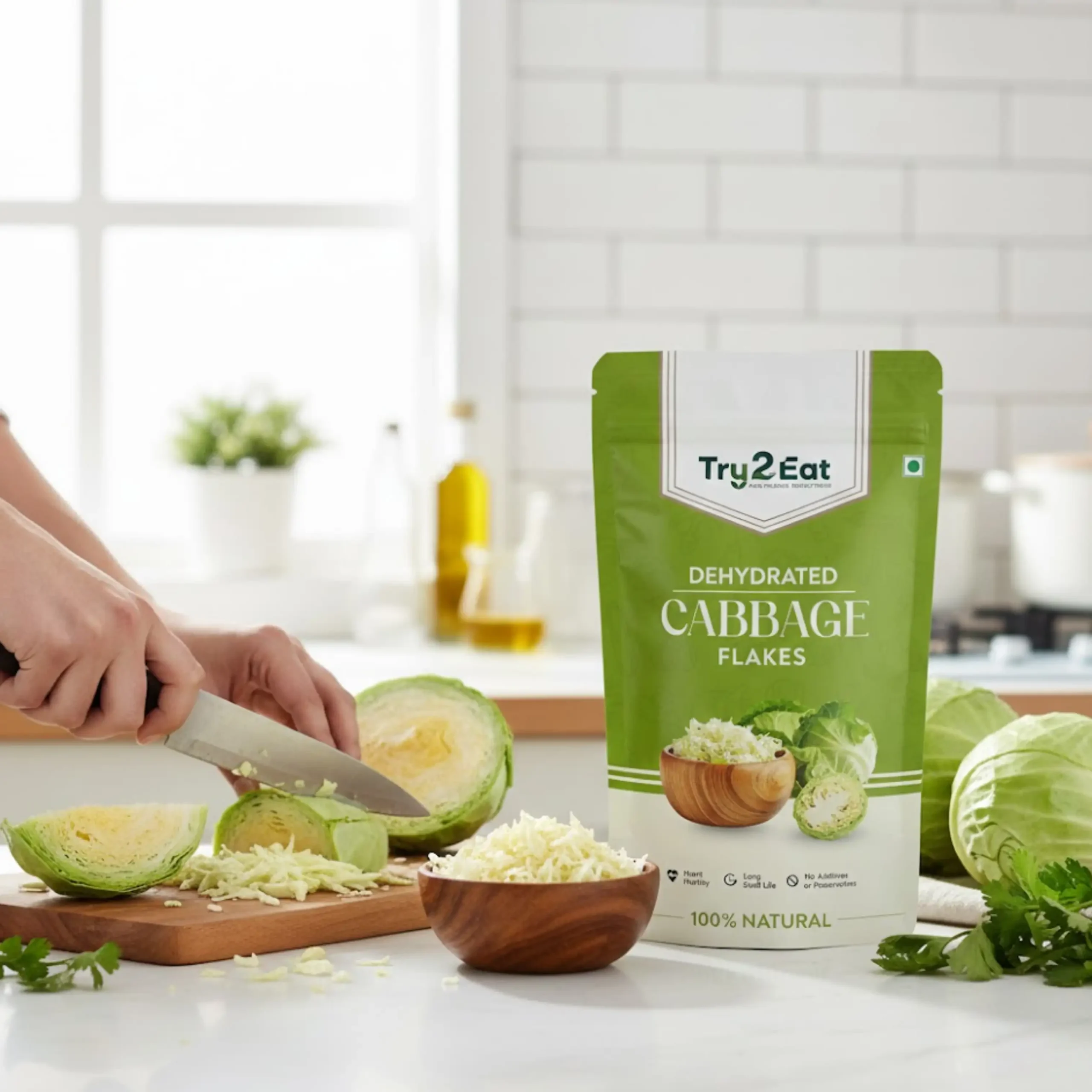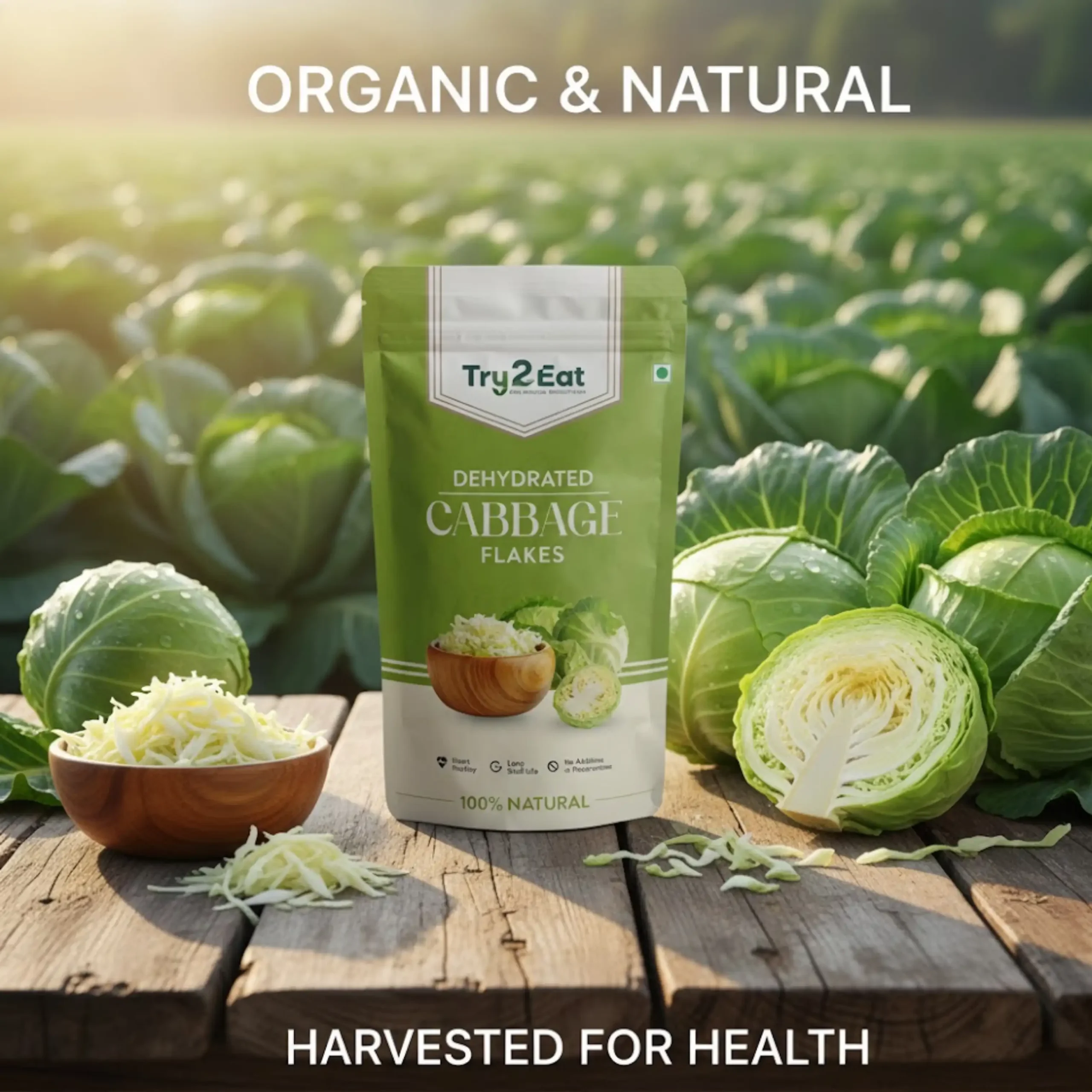 TRY2EAT Dehydrated Cabbage Flakes is carefully processed to retain its natural flavor, color, and nutrients. This product is 100% vegan, preservative-free, and suitable for export markets.