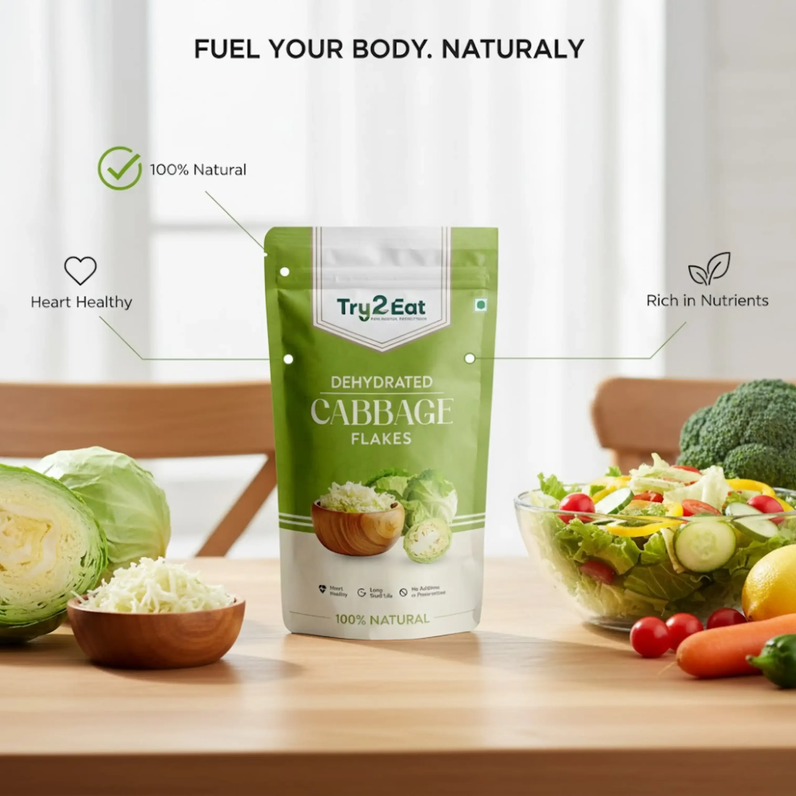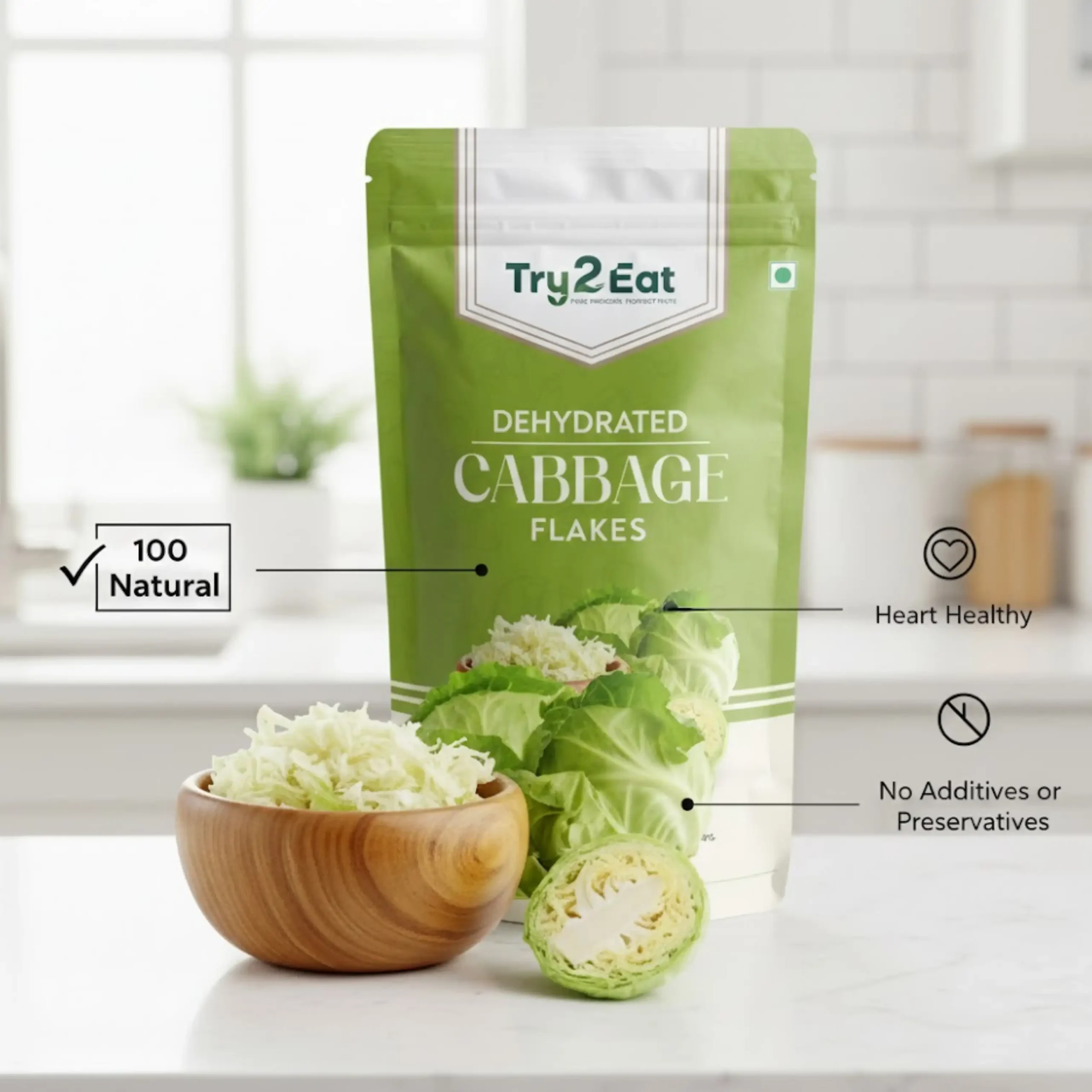 TRY2EAT Cabbage Flakes | 100% Natural | Vegan | No Additives | 50g