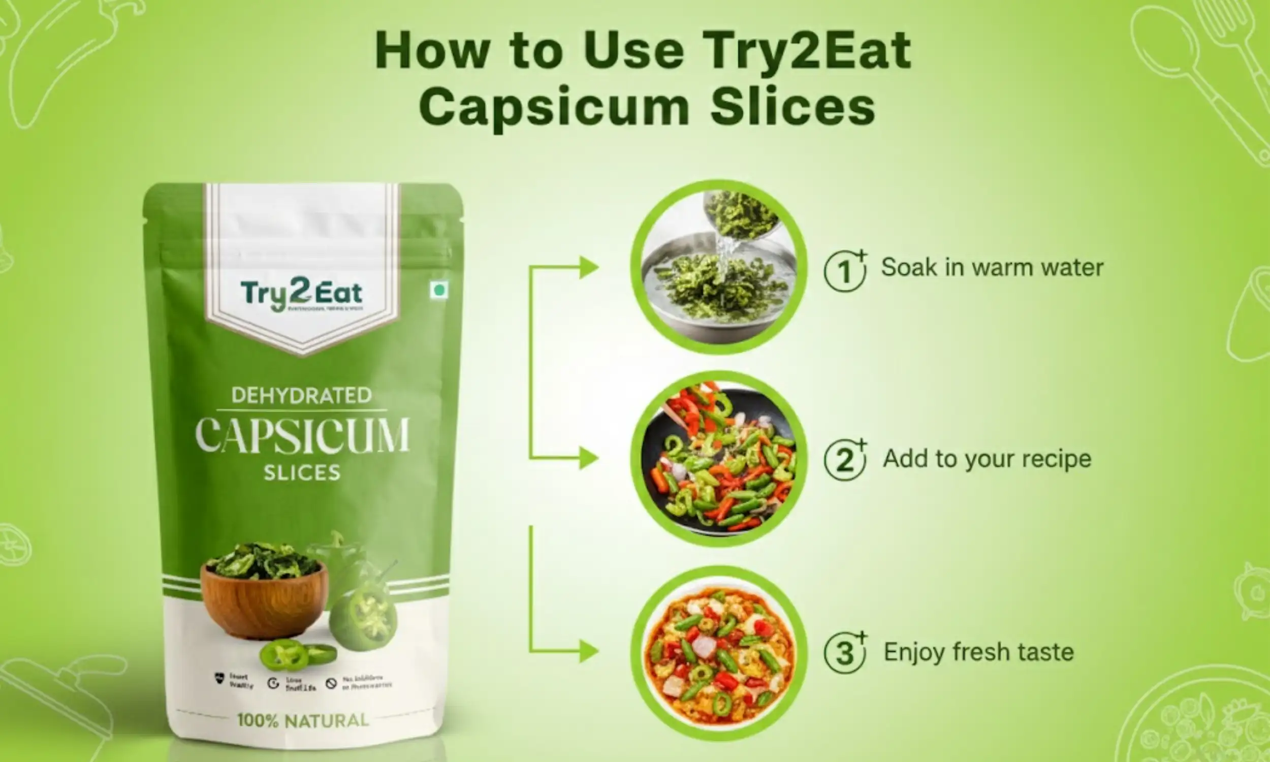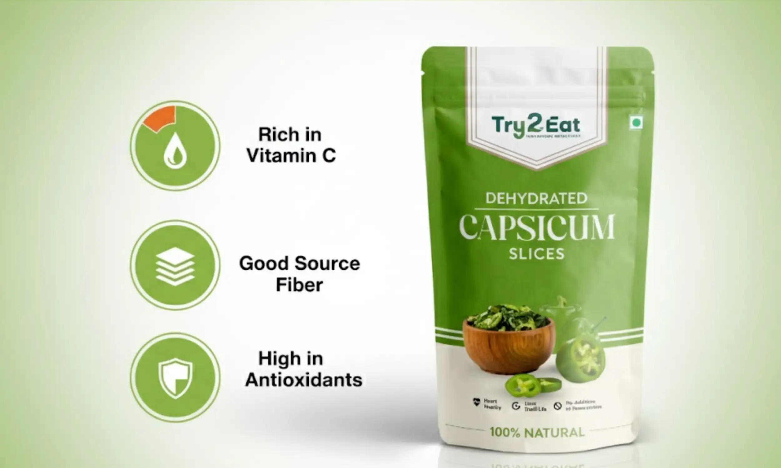 TRY2EAT Capsicum Slice | 100% Natural | Vegan | No Additives | 30g
