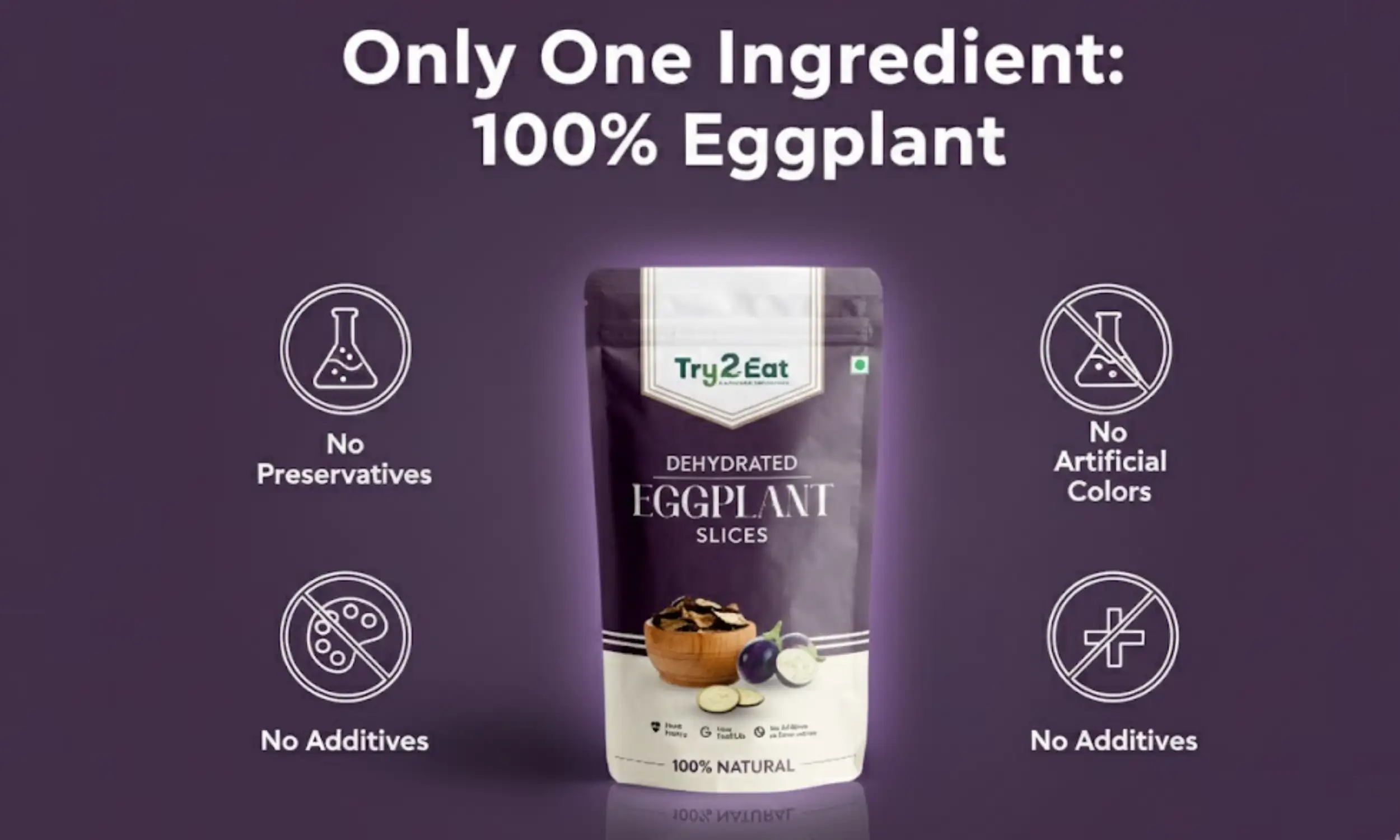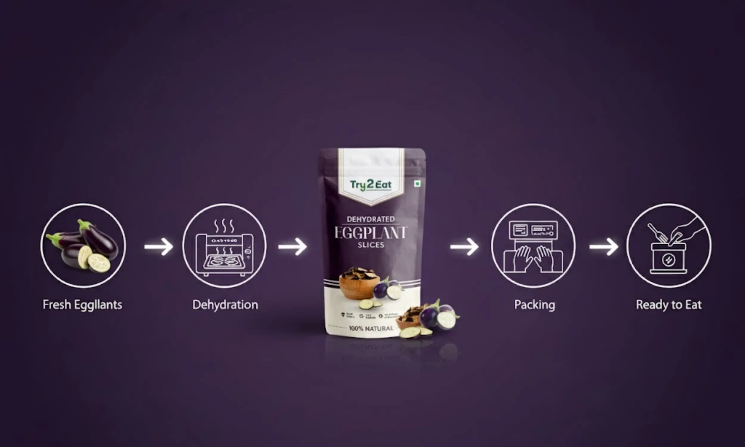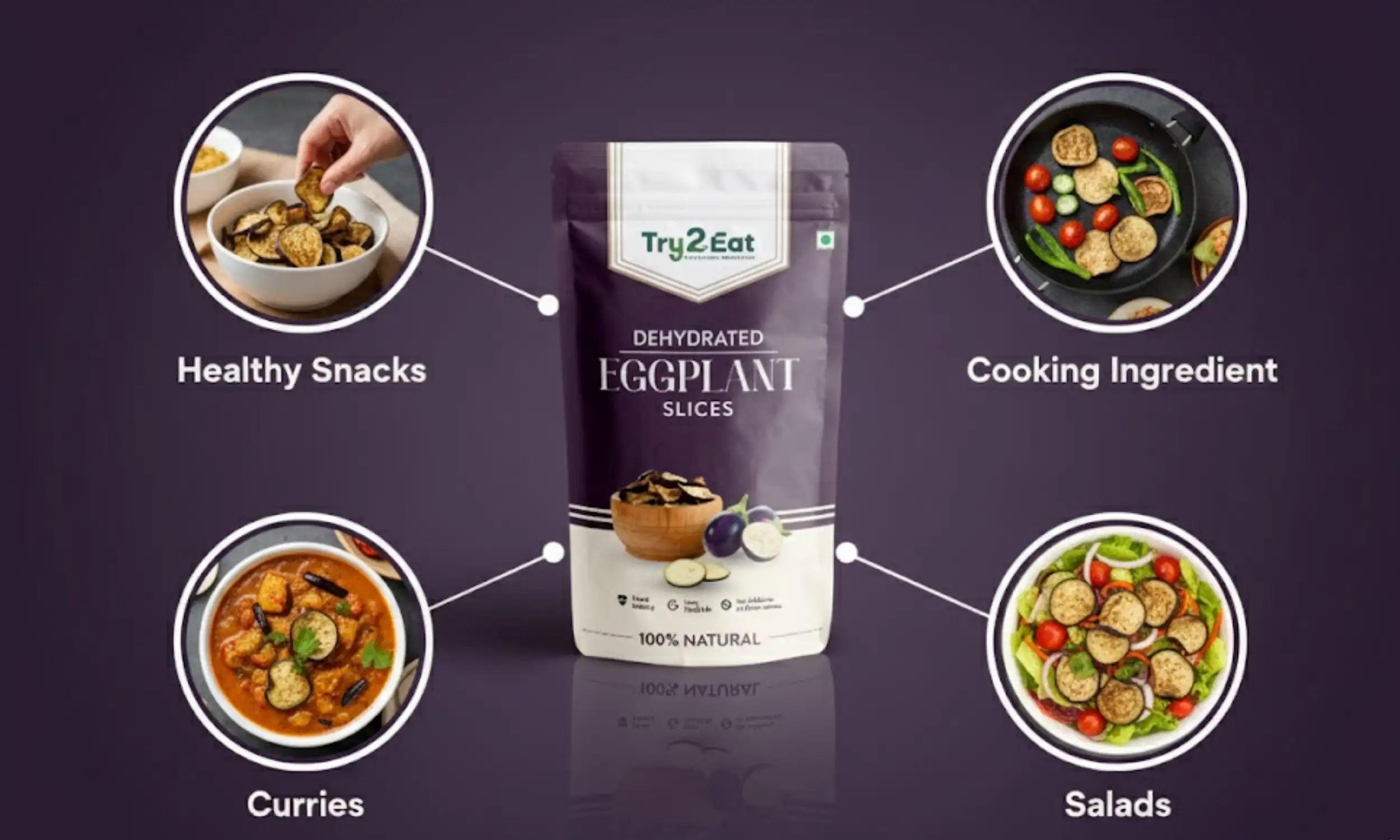 TRY2EAT Dehydrated Eggplant Slice is carefully processed to retain its natural flavor, color, and nutrients. This product is 100% vegan, preservative-free, and suitable for export markets.