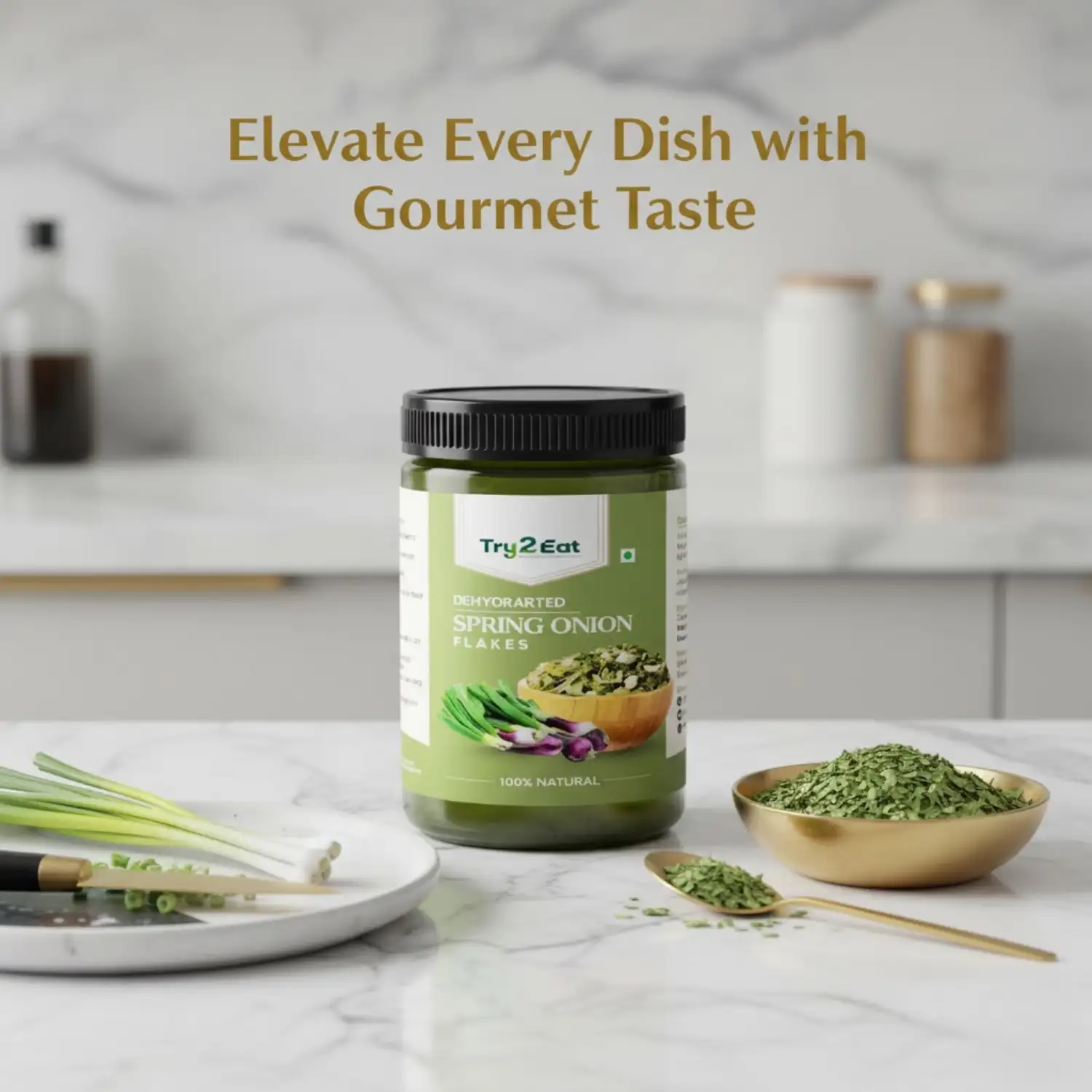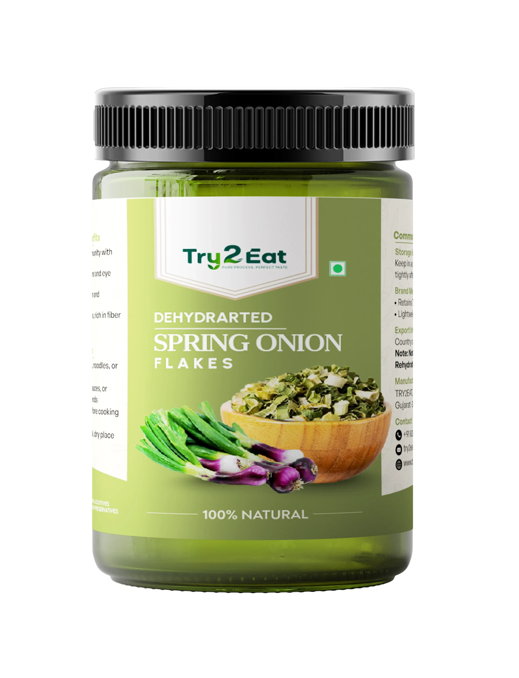 TRY2EAT Spring Onions is produced from premium-quality raw material, dehydrated and finely ground under hygienic conditions. This powder is 100% natural, vegan, and preservative-free, ensuring authentic flavor and nutrition.