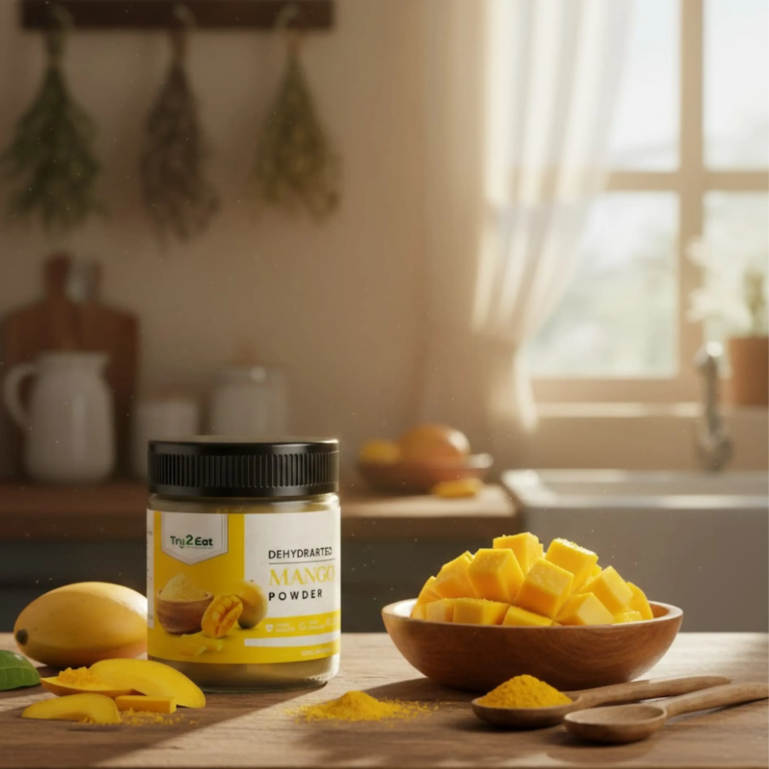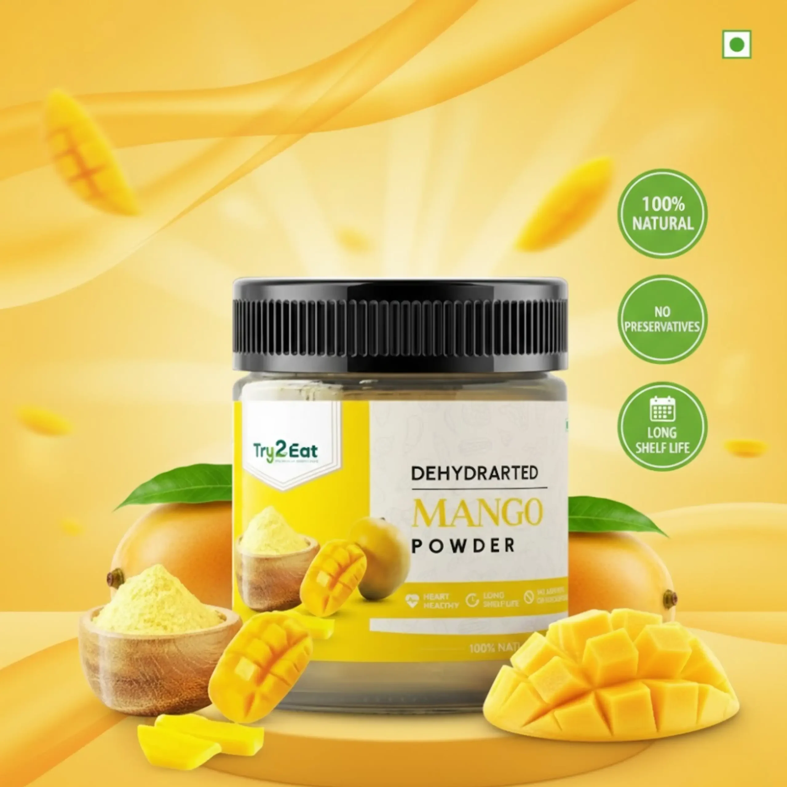TRY2EAT Mango is produced from premium-quality raw material, dehydrated and finely ground under hygienic conditions. This powder is 100% natural, vegan, and preservative-free, ensuring authentic flavor and nutrition.