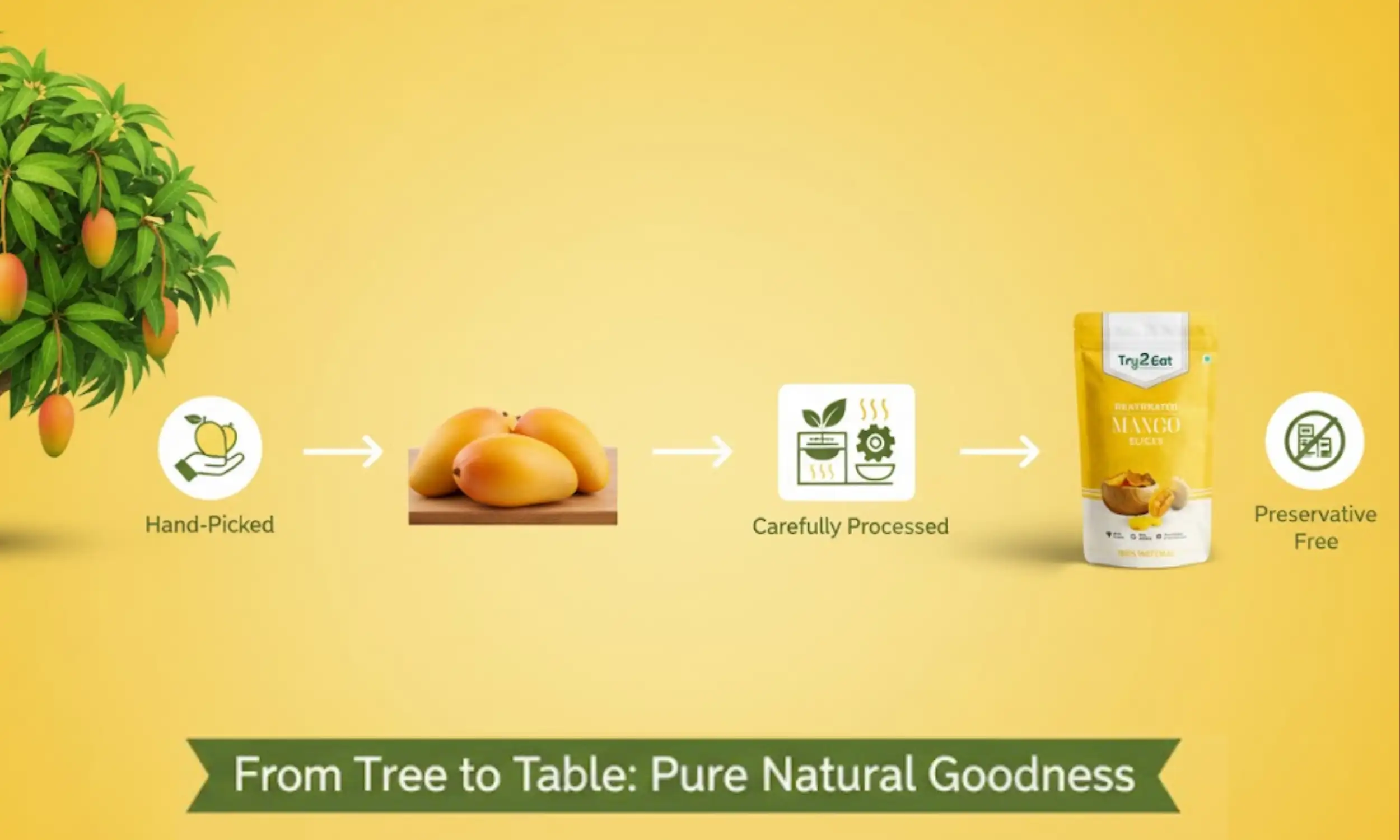 TRY2EAT Dehydrated Mango Slice is carefully processed to retain its natural flavor, color, and nutrients. This product is 100% vegan, preservative-free, and suitable for export markets.