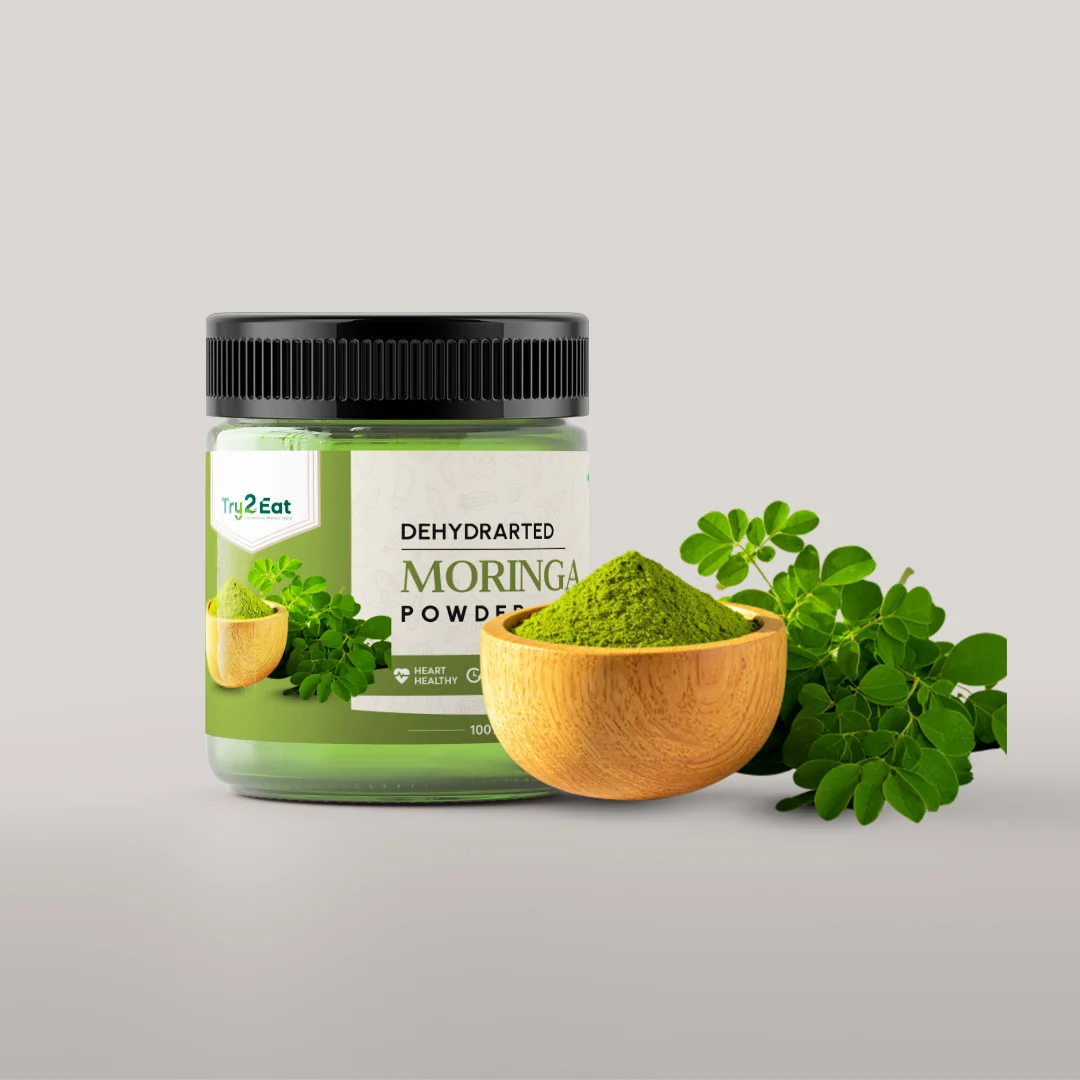 TRY2EAT Moringa is produced from premium-quality raw material, dehydrated and finely ground under hygienic conditions. This powder is 100% natural, vegan, and preservative-free, ensuring authentic flavor and nutrition.
