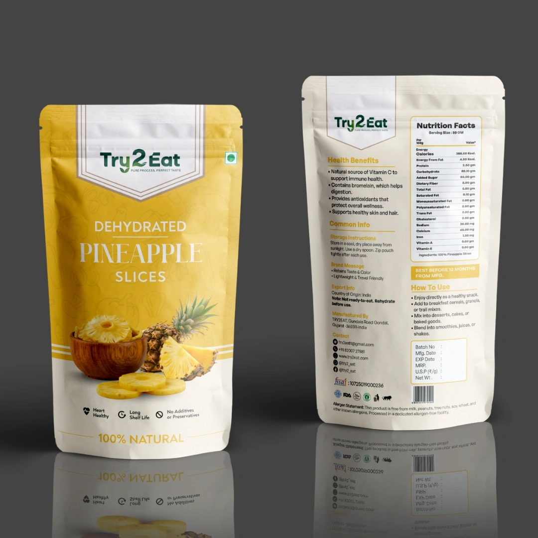 TRY2EAT Dehydrated Pineapple is carefully processed to retain its natural flavor, color, and nutrients. This product is 100% vegan, preservative-free, and suitable for export markets.