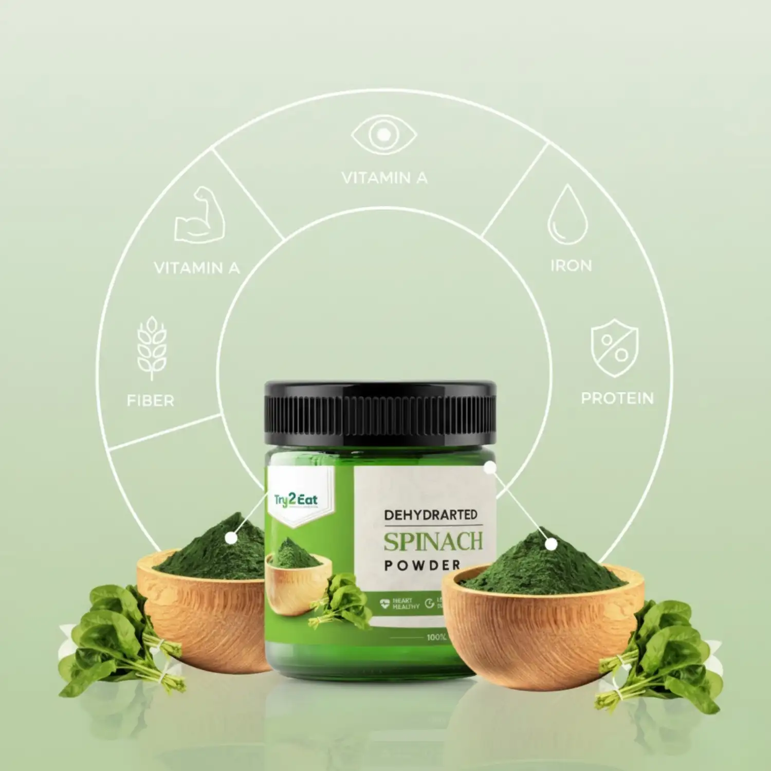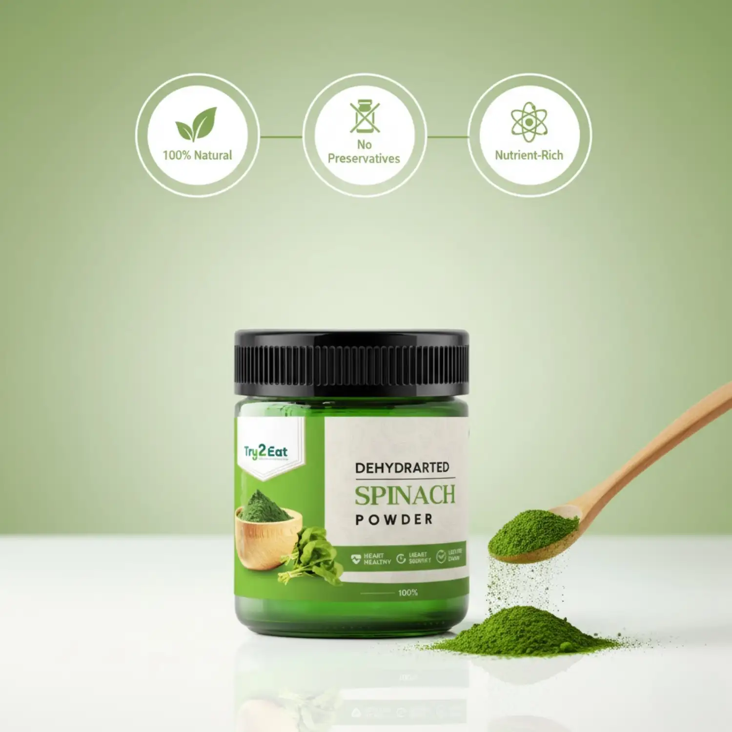 TRY2EAT Spinach Powder | 100% Natural | Vegan | No Additives | 100g